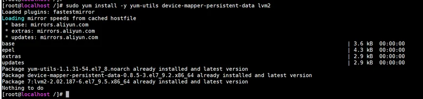 2、安装依赖工具,安装 yum-utils(提供 yum-config-manager 工具)以及 Docker 所需的存储驱动依赖。