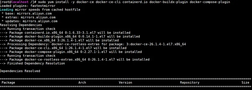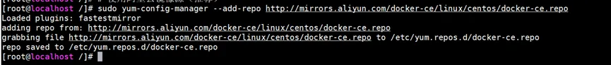# 使用阿里云镜像源sudo yum-config-manager --add-repo http://mirrors.aliyun.com/docker-ce/linux/centos/docker-ce.repo