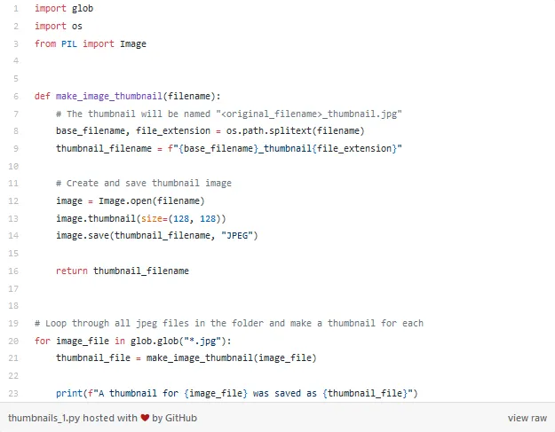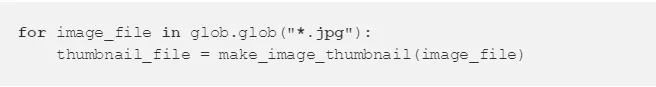 下面的短程序中我们使用Python自带的glob 函数获取一个包含文件夹中所有图片文件的列表,并用Pillow图片处理库获取每张图片的128像素缩略图。