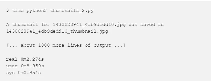 2.274秒程序就运行完了!这便是原来版本的4倍加速。运行时间缩短的原因正是我们这次用4个CPU代替了1个CPU。