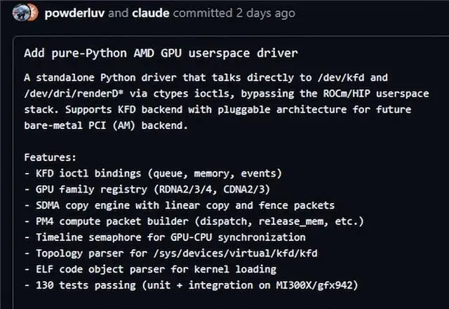 所以,如果你期待一个Python写的日常驱动,大概率要失望了。但这个项目确实撕开了一个口子:AMD的Linux内核接口已经开放到这种程度,以至于用高级语言写脚本就能直接操作。更重要的是,它证明了AI在驱动开发中的辅助价值——从无到有搭一个测试框架,全程不用开编辑器,速度本身就是护城河。