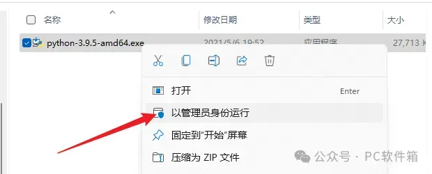 1.解压安装包:鼠标右击【Python 3.9.5】压缩包,选择电脑上安装的解压软件,点击解压到【Python 3.9.5】。