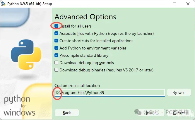 6.勾选【Install Python……】,修改路径地址中的第一个字符C可更改安装位置(建议安装除C盘以外的其他盘,注:安装路径中不能有中文),点击【Install】。