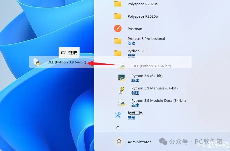 10.双击【IDLE (Python 3.9-bit)】图标启动软件。