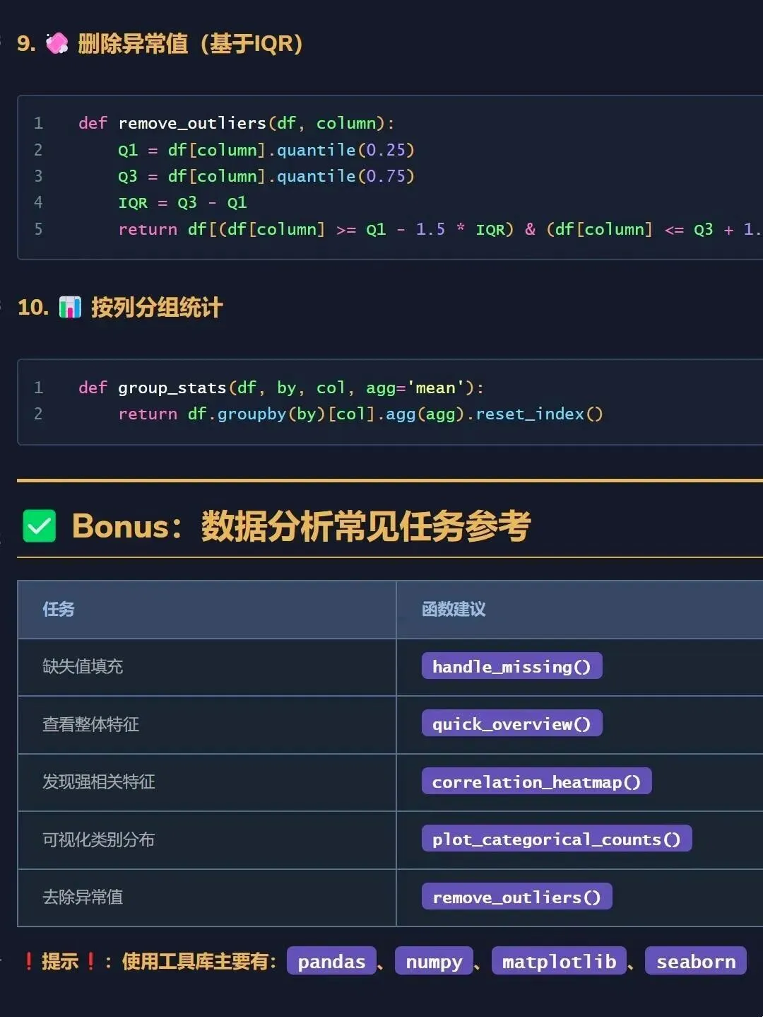 学了 Python 却不会用来做数据分析? 你只缺一份真正「能落地、能直接复用」的函数合集!