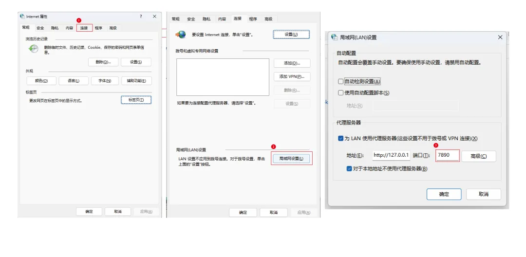不同的电脑代理端口可能不同。请通过以下方式查看你的真实端口并替换代码中的 7890: