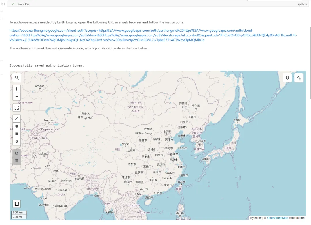 授权成功后,敲入以下两行代码,召唤 GEE 交互式地图: