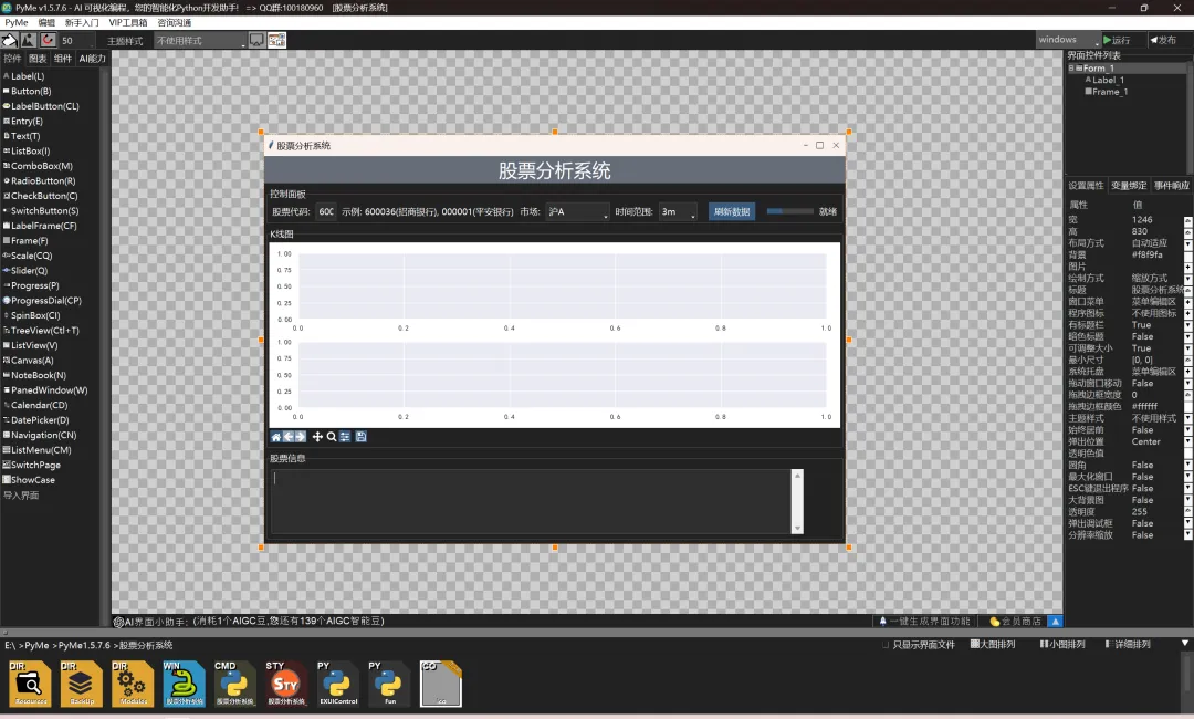 微调布局:在生成结束后,Python中原本独立运行的界面就被嵌入到Frame容器控件中啦!