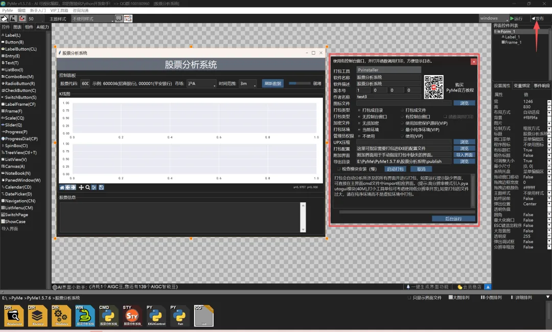 整个过程不需要写一行代码,原本独立的界面就完美地融合到了控件中。导入的界面会作为当前项目的一部分,所有的原有功能都保持不变,这时我们点击右上角的“发布”按钮,即可直接打包为EXE。