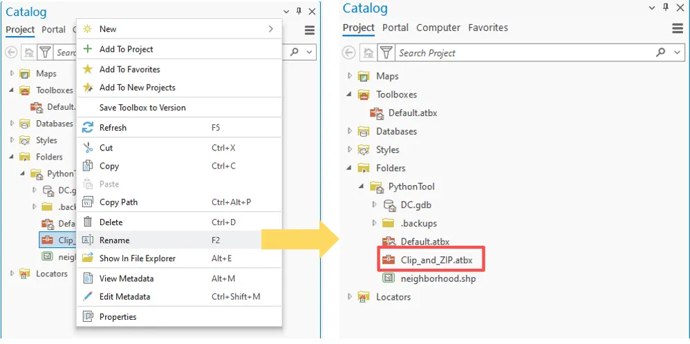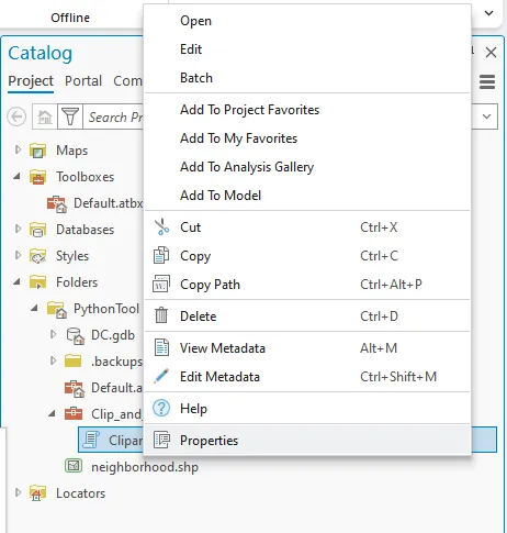 可在 ArcGIS Pro 中创建 Python 脚本工具。 这些工具存储在自定义工具箱中。