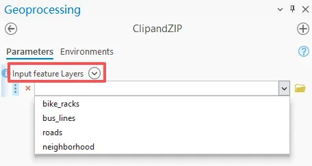 与添加输入图层要素方式一致,现在添加裁剪面参数。