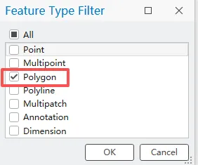 在要素类型过滤器中选择面。