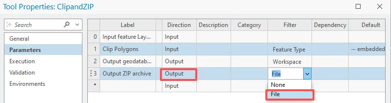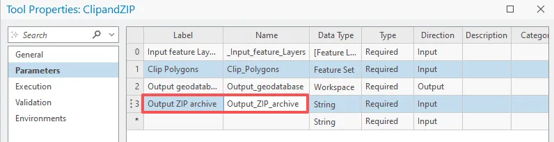 本节将配置输出 zip 存档参数。在参数选项卡上表格第四行中,单击标注列,输入 Output ZIP archive,然后按 Enter 键。
