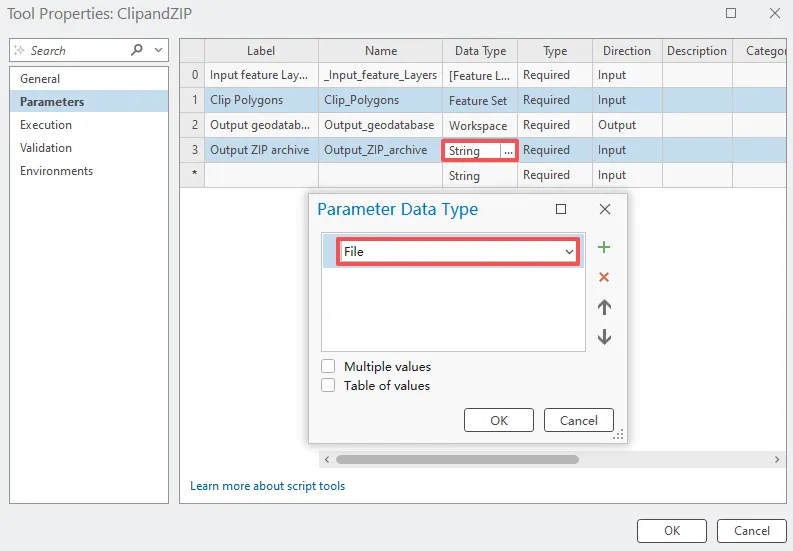 仔细配置工具参数是创建 Python 脚本工具的关键部分。工具参数用于定义工具的用户界面,工具的用户可在其中输入数据和其他值,这些内容将由脚本处理。