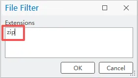 在文件过滤器窗口的扩展名框中,输入 zip。