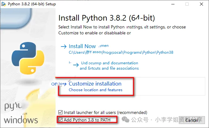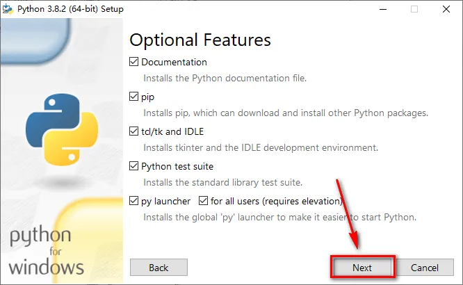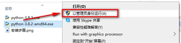 2.选中python-3.8.2,鼠标右击选择“以管理员身份运行” 注:32系统选择-32,64位系统选择-64 ![]() 3.勾选Add Python 3.8 to PATH,点击“Customize installation” ![]() 4.点击“Next” ![]() 5.选择软件安装路径,点击“Install” ![]() 6.软件正在安装,请耐心等待