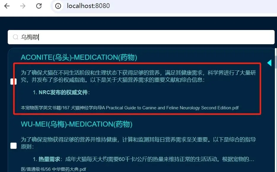 注:搜索【乌梅散】时,详情没变,这是不对的,看代码排查一下。
