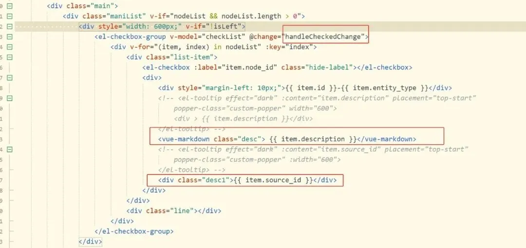 注:这个都是靠函数handleCheckedChange来触发,没有什么特殊的操作,所以,没更新详情的原因是vue-markdown引起的。查下AI。
