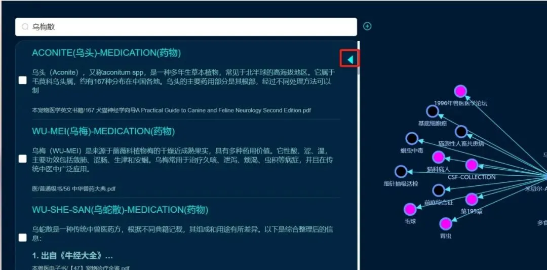 描述:现在节点【乌梅散】搜索不出来,看下啥原因。