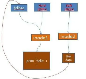 从图上可以看出硬链接和软链接的区别: