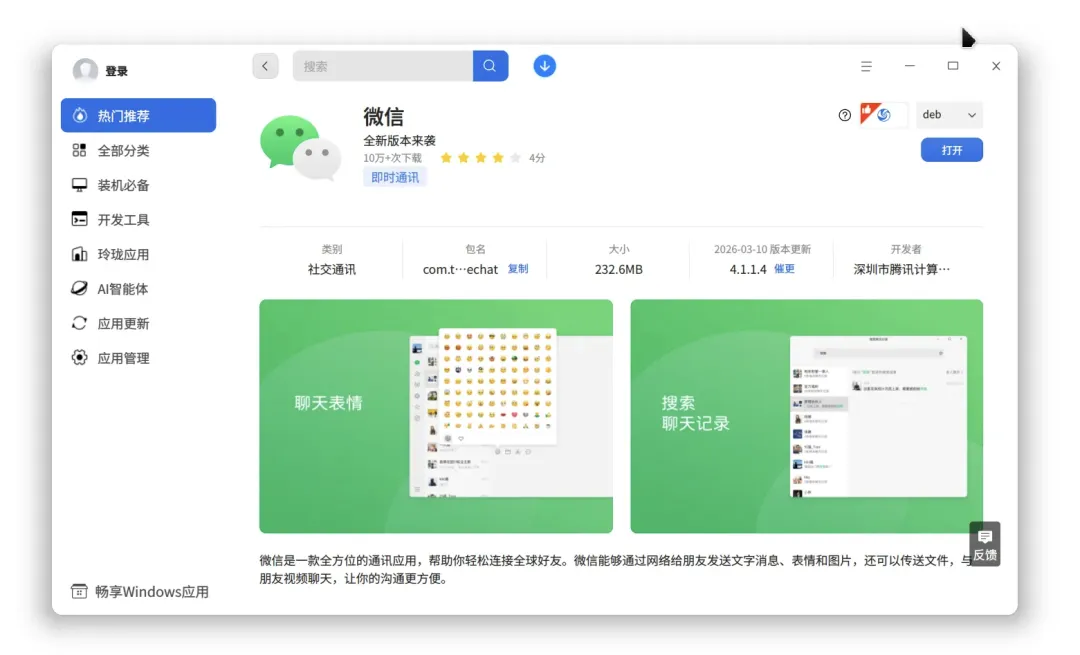 - • 方式二:前往微信Linux官网,下载deb、rpm、AppImage等对应格式的安装包,手动安装更新(适合非deepin系统用户)。