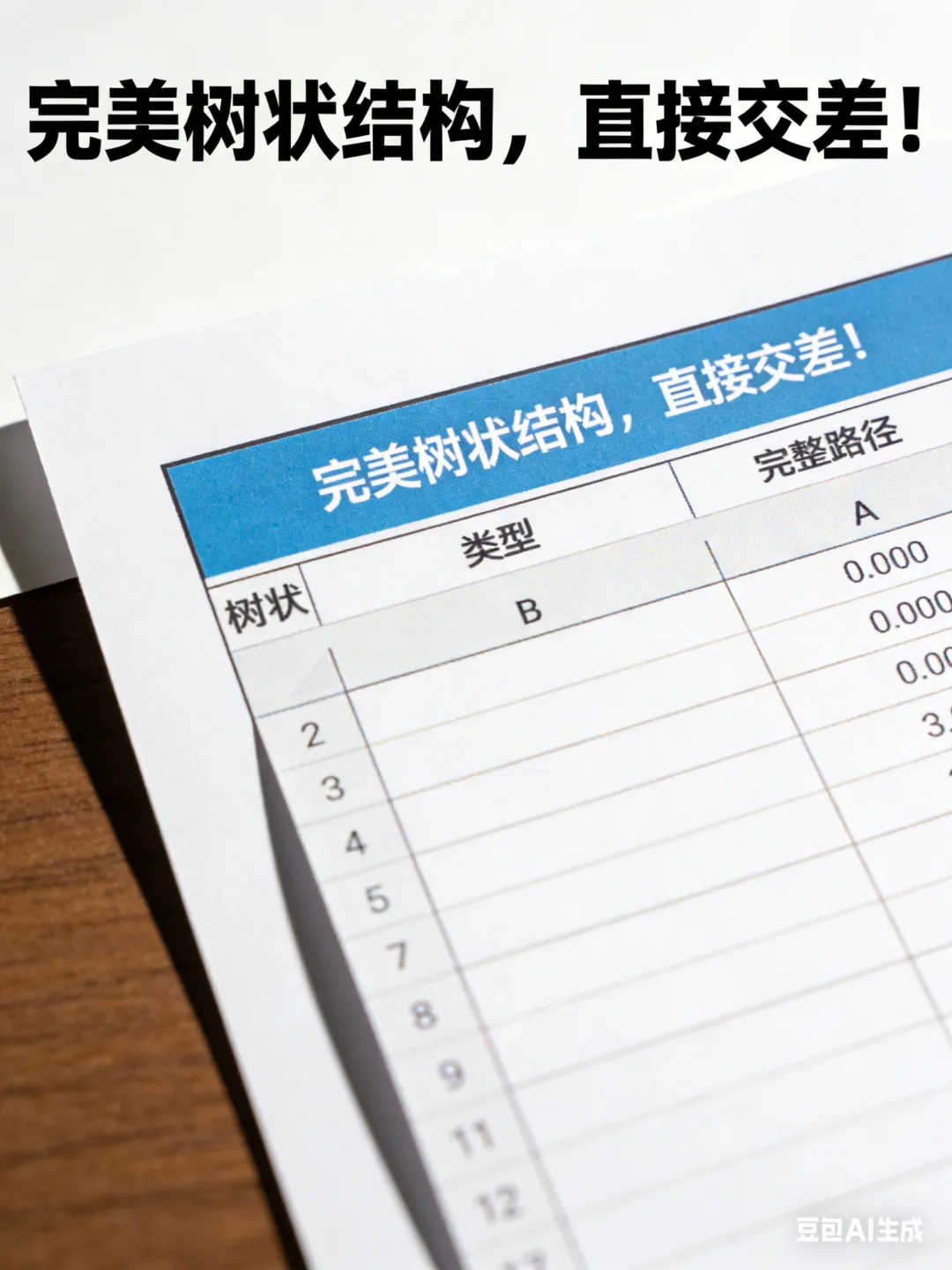 import osfrom openpyxl import Workbookdef get_folder_tree(folder_path): """ 遍历文件夹,生成树状结构的文件列表 :param folder_path: 目标文件夹路径 :return: 树状结构的文件信息列表,每个元素是[层级展示, 文件名, 完整路径] """ # 存储最终的树状数据 tree_data = [] # 遍历文件夹:root是当前目录,dirs是当前目录下的子文件夹,files是当前目录下的文件 for root, dirs, files in os.walk(folder_path): # 计算当前路径相对于根目录的层级(根目录层级为0) level = root.replace(folder_path, '').count(os.sep) # 生成层级缩进符(第一层不用缩进,第二层开始加│ ,最后一层加├─) indent = '│ ' * (level - 1) if level > 0 else '' # 处理文件夹名称 folder_name = os.path.basename(root) if level == 0: # 根目录本身 tree_data.append([folder_name, '【文件夹】', root]) else: # 子文件夹 tree_data.append([f'{indent}├─ {folder_name}', '【文件夹】', root]) # 处理当前文件夹下的文件 file_indent = '│ ' * level for file in files: file_path = os.path.join(root, file) tree_data.append([f'{file_indent}├─ {file}', '【文件】', file_path]) return tree_datadef write_to_excel(tree_data, excel_path): """ 将树状数据写入Excel :param tree_data: 树状结构数据 :param excel_path: 输出Excel的路径(如:D:/文件列表.xlsx) """ # 创建新的Excel工作簿 wb = Workbook() # 获取默认工作表 ws = wb.active # 设置表头 ws.append(['树状结构', '类型', '完整路径']) # 写入数据 for row in tree_data: ws.append(row) # 调整列宽(让内容显示完整) ws.column_dimensions['A'].width = 60 # 树状结构列宽 ws.column_dimensions['B'].width = 10 # 类型列宽 ws.column_dimensions['C'].width = 80 # 完整路径列宽 # 保存Excel wb.save(excel_path) print(f'✅ Excel已生成:{excel_path}')if __name__ == '__main__': # -------------------------- 请修改这里的路径 -------------------------- # 目标文件夹路径(替换成你要读取的文件夹,路径用/或\\都可以) target_folder = r'D:\厨房资料' # 输出Excel的路径(替换成你想保存的位置和文件名) output_excel = r'D:\厨房文件列表.xlsx' # --------------------------------------------------------------------- # 检查目标文件夹是否存在 if not os.path.exists(target_folder): print(f'❌ 错误:文件夹 {target_folder} 不存在,请检查路径!') else: # 获取树状结构数据 tree_data = get_folder_tree(target_folder) # 写入Excel write_to_excel(tree_data, output_excel)