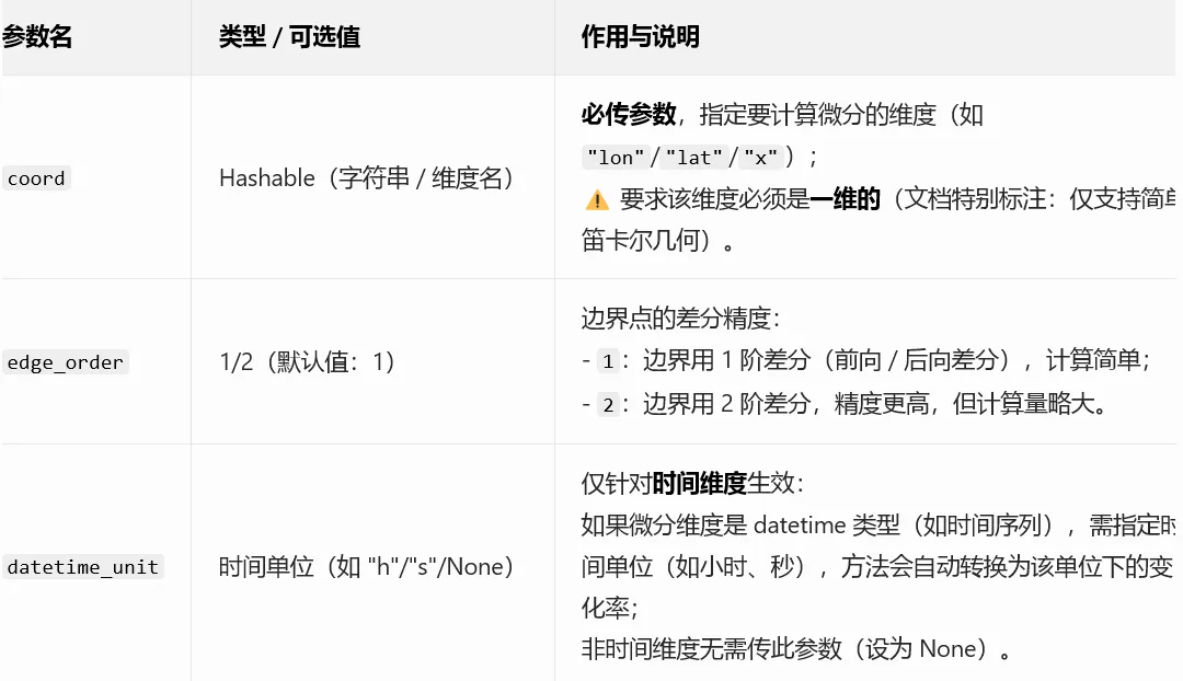 其中:Φ['lat']是 xarray DataArray 类型的纬度数组(单位为度);f = f.assign_coords({'lat': lat_rad}) 重新赋值了纬度坐标(弧度),这仅改变坐标标签,不影响 f 的数值本身。wind_climatic = mpcalc.wind_speed(u_climatic, v_climatic)wind_climaticfrom metpy.constants import earth_avg_radius