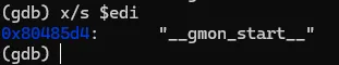 在linux机制中,当在shell 里执行程序时,第一个是传入参数的个数,也就是argc。第二个参数是一个数组,这个数组保存的是字符串指针,这些指针就是指向我们执行命令时的参数,但我们输入的参数是从数组的第二个元素、下标为1的位置开始。而第一个元素、下标为0的元素,保存的是程序的路径。那么我们确定的是ebp+0xc是main函数的第二个参数,而这个参数是一个数组,esi取的是这个数组的第二个元素。也就是程序调用时的第一个参数。结合我们在edi上读到的内容 "__gmon_start__",可以得出repz cmps指令那一行,就是需要将程序调用时的第一个输入参数与"__gmon_start__"字符串的前10位比较(repz cmps 指令前的 mov ecx 0xa)。如果相等,则提示"[!] Solved!",如果不等则报错。要解决这个题目,需要一些基本的Linux知识,因为全都是基于命令行的,包括程序的执行都是基于命令行的,跟我们一般使用的Windows有些许不一样;另外就是需要了解一些基于Linux的一些反汇编程序,而本文使用的是GDB命令行工具,当然如果装了图形界面,可以使用其他的一些如Ghidra 这样的图形软件 。最后一点就是需要了解linux上程序的汇编知识,如程序参数是怎样传递的,这点反而比windows简单多。再加上汇编语言上程序调用的约定,这一点哪个平台都基本适用的。