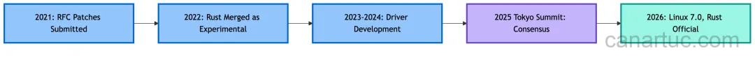 Linux 7.0 Rust 采纳时间线(从 2020 年 RFC 到 2026 年成为官方配置)