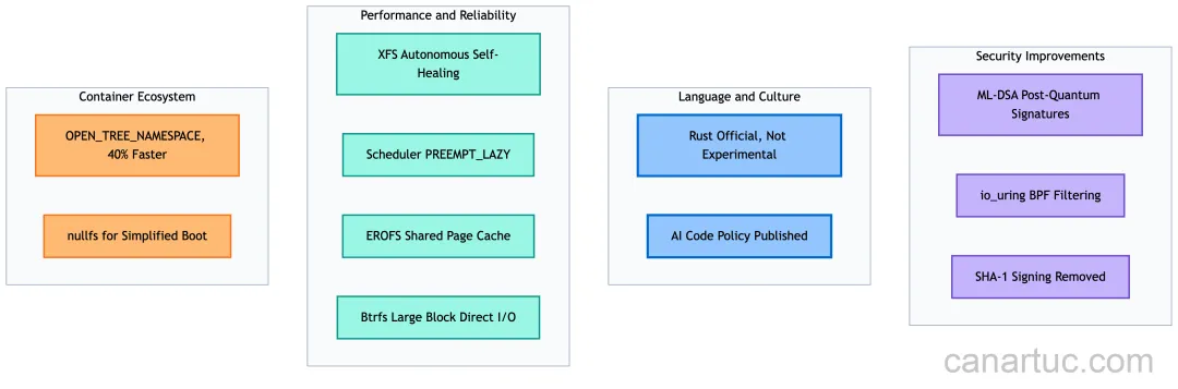 Linux 内核 7.0 功能概览,涵盖安全、性能和容器