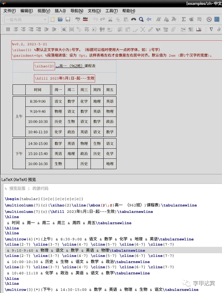 * 第1课:用 LyX 排一个简单的《课程表》