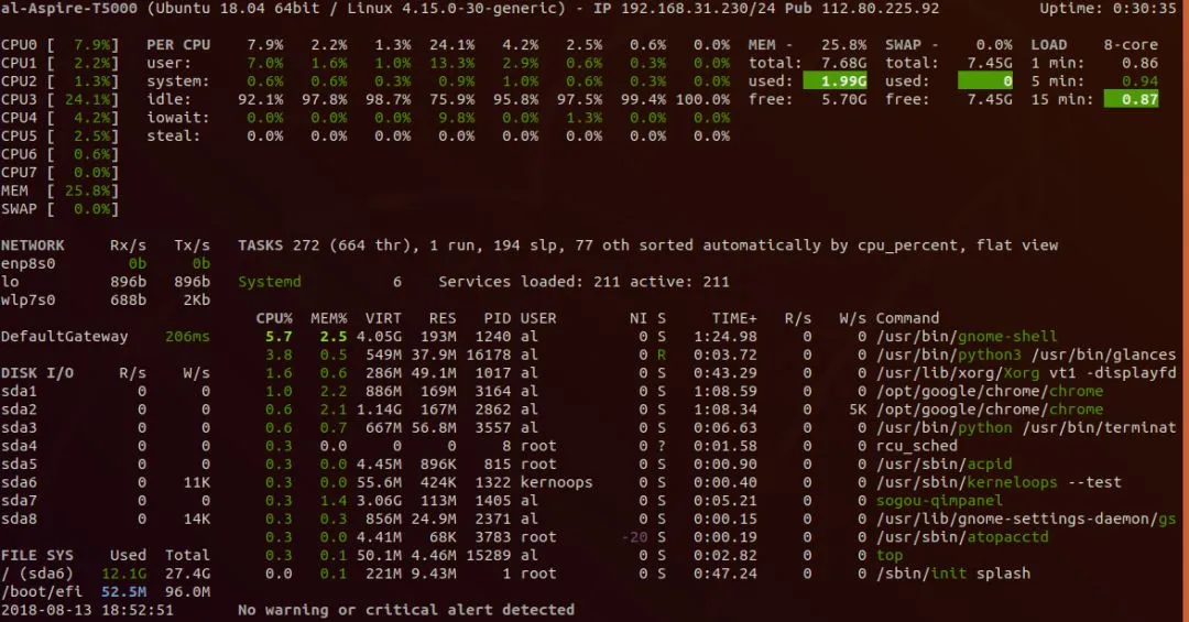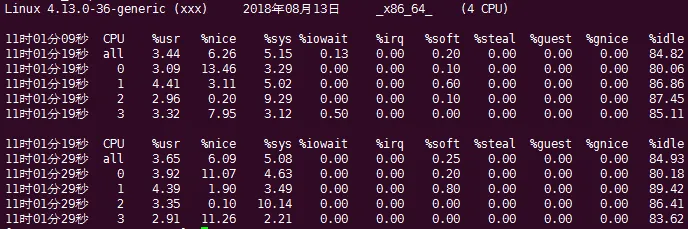 9.53 9.12 8.37 3/889 28165us:user,统计nice小于等于0的用户空间进程,也即优先级为100~120。ni:nice,统计nice大于0的用户空间进程,也即优先级为121~139。sys:system,统计内核态运行时间,不包括中断。id:idle,几系统处于空闲态。wa:iowait,统计io等待时间。hi:hardware interrupt,统计硬件中断时间。si:software interrupt,统计软中断时间。st:steal