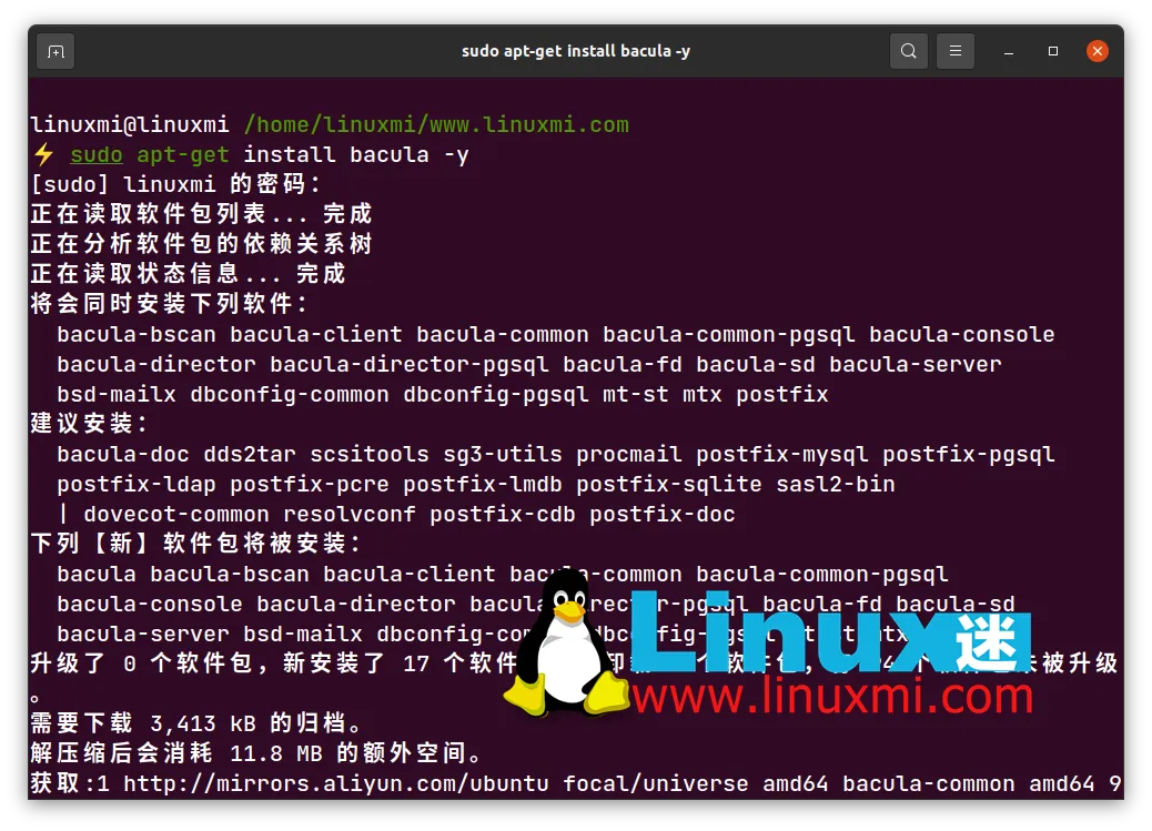 linuxmi@linuxmi /home/linuxmi/www.linuxmi.com ⚡ sudo apt-get install bacula -y