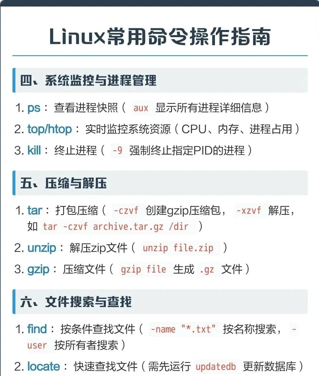Linux 作为服务器、运维、开发的核心系统,命令行操作是绕不开的门槛。很多人觉得 Linux 难,难就难在命令多、参数杂,但其实 80% 的日常操作只靠 20% 的核心命令就能完成。这篇指南把