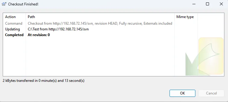 [root@svnserve ~]# yum install -y subversion[root@svnserve ~]# svnserve --versionsvnserve, version 1.7.14 (r1542130)compiled Sep 30 2020, 17:44:04Copyright (C) 2013 The Apache Software Foundation.This software consists of contributions made by many people; see the NOTICEfile for more information.Subversion is open source software, see http://subversion.apache.org/The following repository back-end (FS) modules are available:* fs_base : Module for working with a Berkeley DB repository.* fs_fs : Module for working with a plain file (FSFS) repository.Cyrus SASL authentication is available.