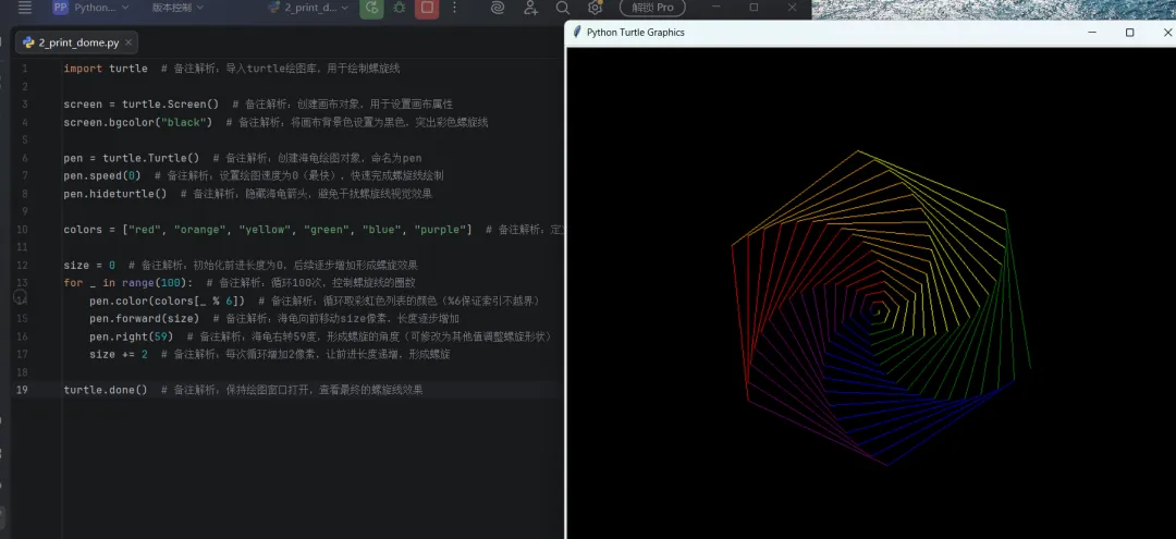【python每日一练】案例:8岁小孩绘制彩虹色螺旋线(趣味进阶)