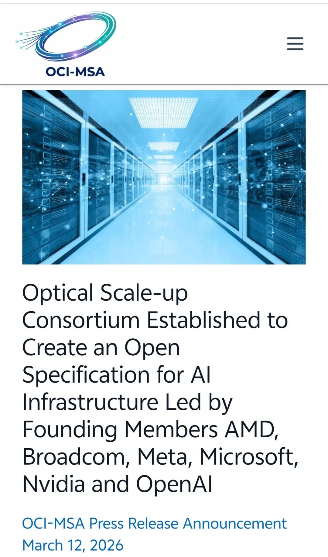 就在今天,一个堪称“梦幻阵容”的联盟正式官宣:AMD[1]、Broadcom[1]、Meta[1]、Microsoft[1]、NVIDIA[1]以及OpenAI[1]共同组建了光学计算互连 (OCI) 多源协议 (MSA) 联盟。