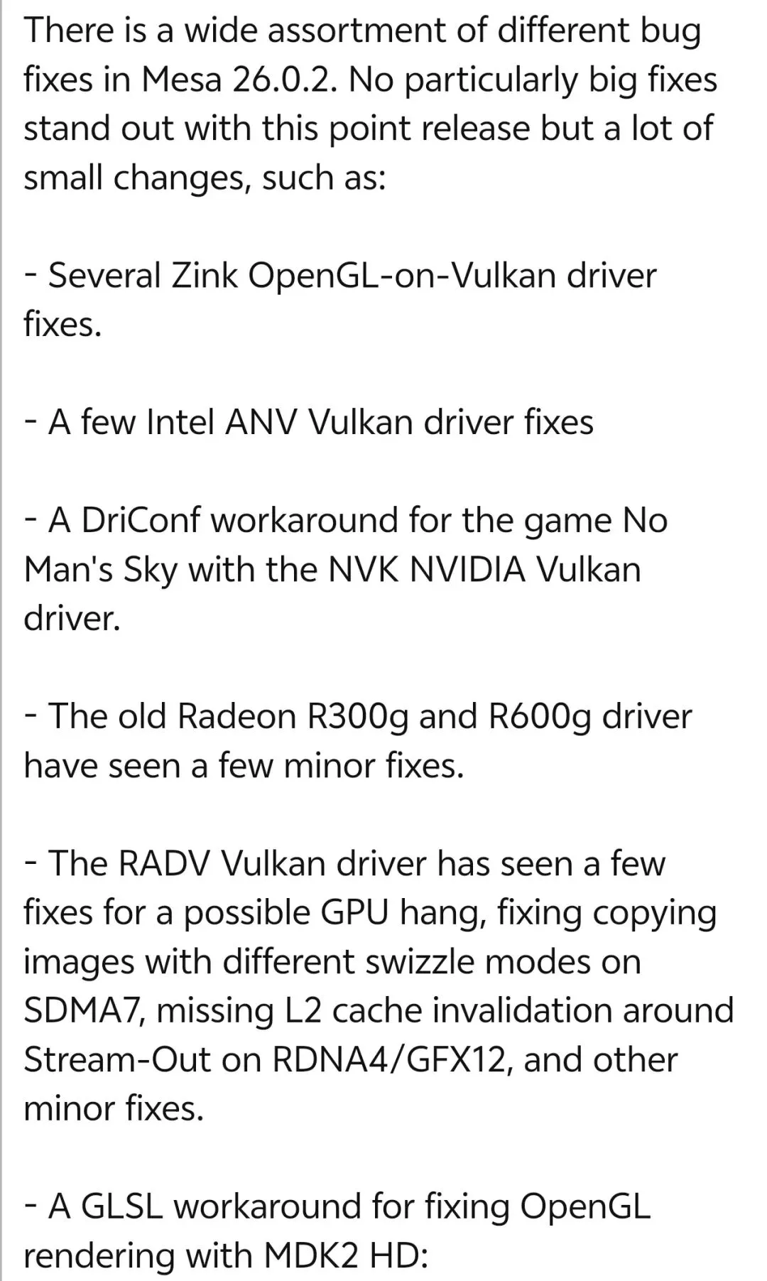 [2]Mesa 26.0.2:https://www.phoronix.com/news/Mesa-26.0.2-Released