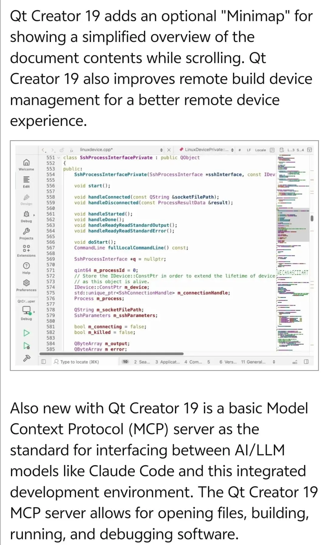 Qt Creator 19[3]正式发布,这次更新最引人注目的不是界面美化,而是它内置了一个Model Context Protocol (MCP) 服务器。