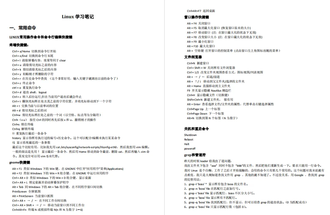 Linux作为一款开源操作系统,在IT行业被广泛使用。尤其作为Linux运维,怎么能不懂Linux呢?然而学习Linux有大量的内容需要记忆和熟悉,对于新手来说,学习曲线非常陡峭。这也是今天分享这份笔记的初衷,希望能让更多的人不花一分钱就能了解Linux。