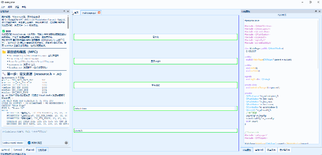 #pragma once#include<QMainWindow>#include<QVBoxLayout>#include<QComboBox>#include<QPushButton>#include<QLineEdit>#include"logindlg.h"#include"scoredetaildlg.h"class MainPage : public QMainWindow{ Q_OBJECTpublic: explicitMainPage(QWidget * parent = nullptr); public: voidinitUI(); voidinitSlots();signals: voidsigTest(int, QString);private slots: voidonIndexChanged(int param1);private: QVBoxLayout *m_qvboxlayout_0; QPushButton *m_btn_login; QPushButton *m_btn_max; QPushButton *m_btn_score; QComboBox *m_qcombobox_0; QLineEdit *m_qlineedit_1; // 用户变量 LoginDlg* m_logdlg; ScoreDetailDlg* m_scoredlg; int m_count;};// Source code:#include"mainpage.h"#include<QtWidgets>MainPage::MainPage(QWidget * parent) : QMainWindow(parent), m_qvboxlayout_0(nullptr), m_btn_login(nullptr), m_btn_max(nullptr), m_btn_score(nullptr), m_qcombobox_0(nullptr), m_qlineedit_1(nullptr), m_logdlg(new LoginDlg()), m_scoredlg(new ScoreDetailDlg()){ resize(800, 600); initUI(); initSlots();}voidMainPage::initUI(){ setWindowFlags(windowFlags() & ~Qt::WindowContextHelpButtonHint); m_qvboxlayout_0 = new QVBoxLayout; m_btn_max = new QPushButton; m_btn_max->setText("最大化"); m_qvboxlayout_0->addWidget(m_btn_max); m_btn_login = new QPushButton; m_btn_login->setText("显示Login"); m_qvboxlayout_0->addWidget(m_btn_login); m_btn_score = new QPushButton; m_btn_score->setText("学生成绩"); m_qvboxlayout_0->addWidget(m_btn_score); m_qcombobox_0 = new QComboBox; m_qcombobox_0->addItem("Item 1"); m_qvboxlayout_0->addWidget(m_qcombobox_0); m_qlineedit_1 = new QLineEdit; m_qlineedit_1->setText("LineEdit"); m_qvboxlayout_0->addWidget(m_qlineedit_1); QWidget * centralWidget = new QWidget(this); setCentralWidget(centralWidget); centralWidget->setLayout(m_qvboxlayout_0);}voidMainPage::initSlots(){ connect(m_qpushbutton_0, &QPushButton::clicked, this, & MainPage::showMaximized); connect(m_btn_login, &QPushButton::clicked, m_logdlg, & LoginDlg::exec); connect(m_qcombobox_0, &QComboBox::currentIndexChanged, this, & MainPage::onIndexChanged); connect(m_qpushbutton_0, &QPushButton::clicked, m_scoredlg, & ScoreDetailDlg::exec); }voidMainPage::onIndexChanged(int param1){ // TODO: Here add yourself code}