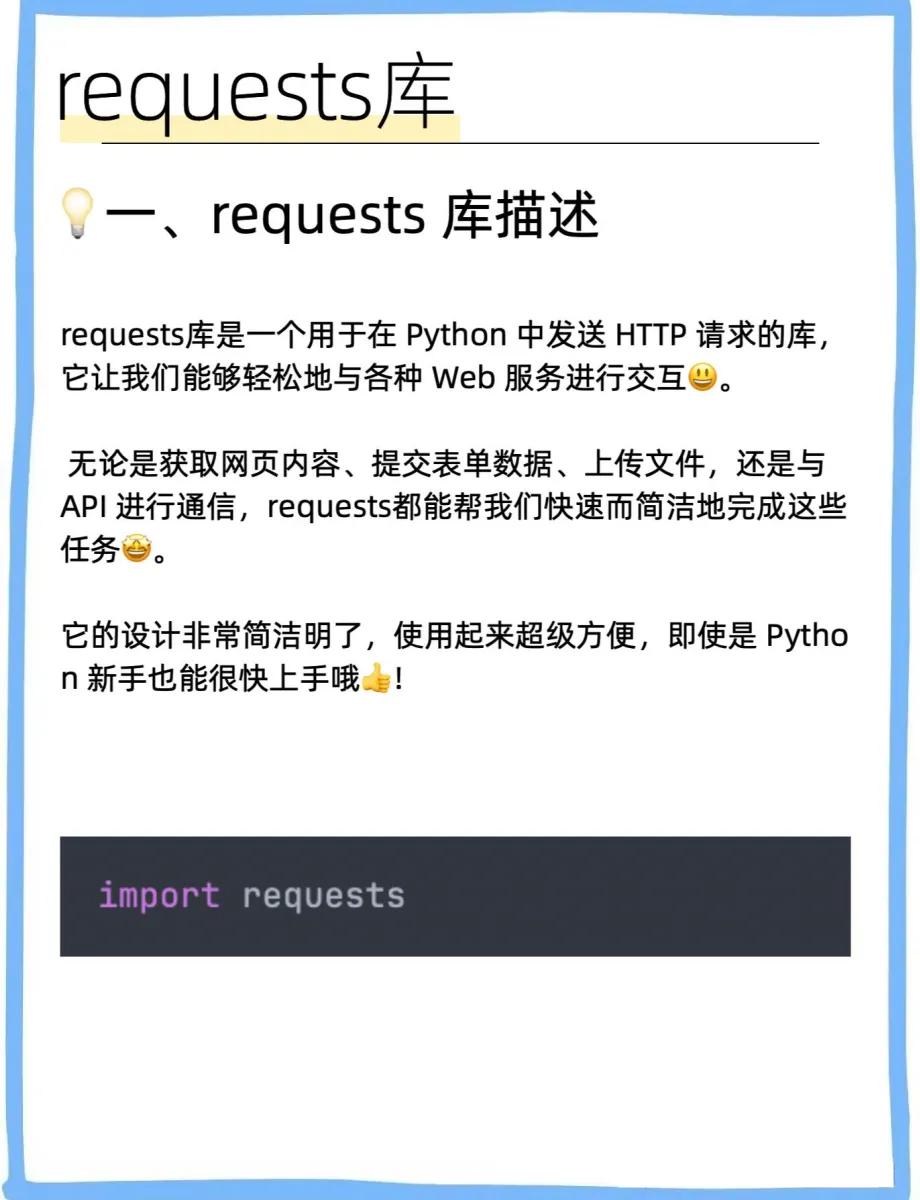 今天来给大家好好介绍一下 Python 中超级厉害的requests库! 它可是我们在 Python 世界里与网络交互的得力小助手哦!