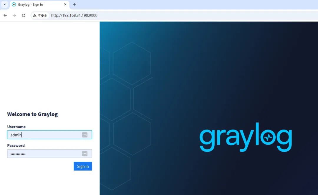 安装完成后Graylog的登录账号密码为admin/Graylog@2025