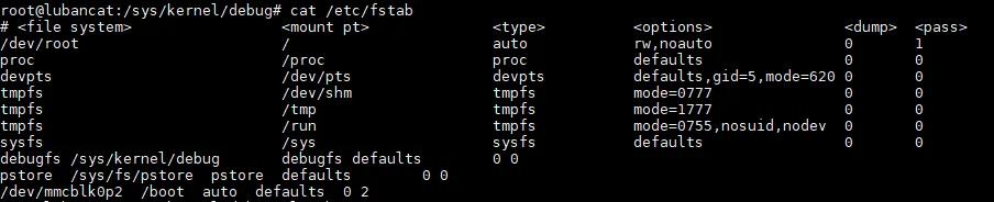 root@lubancat:/etc# vim fstab