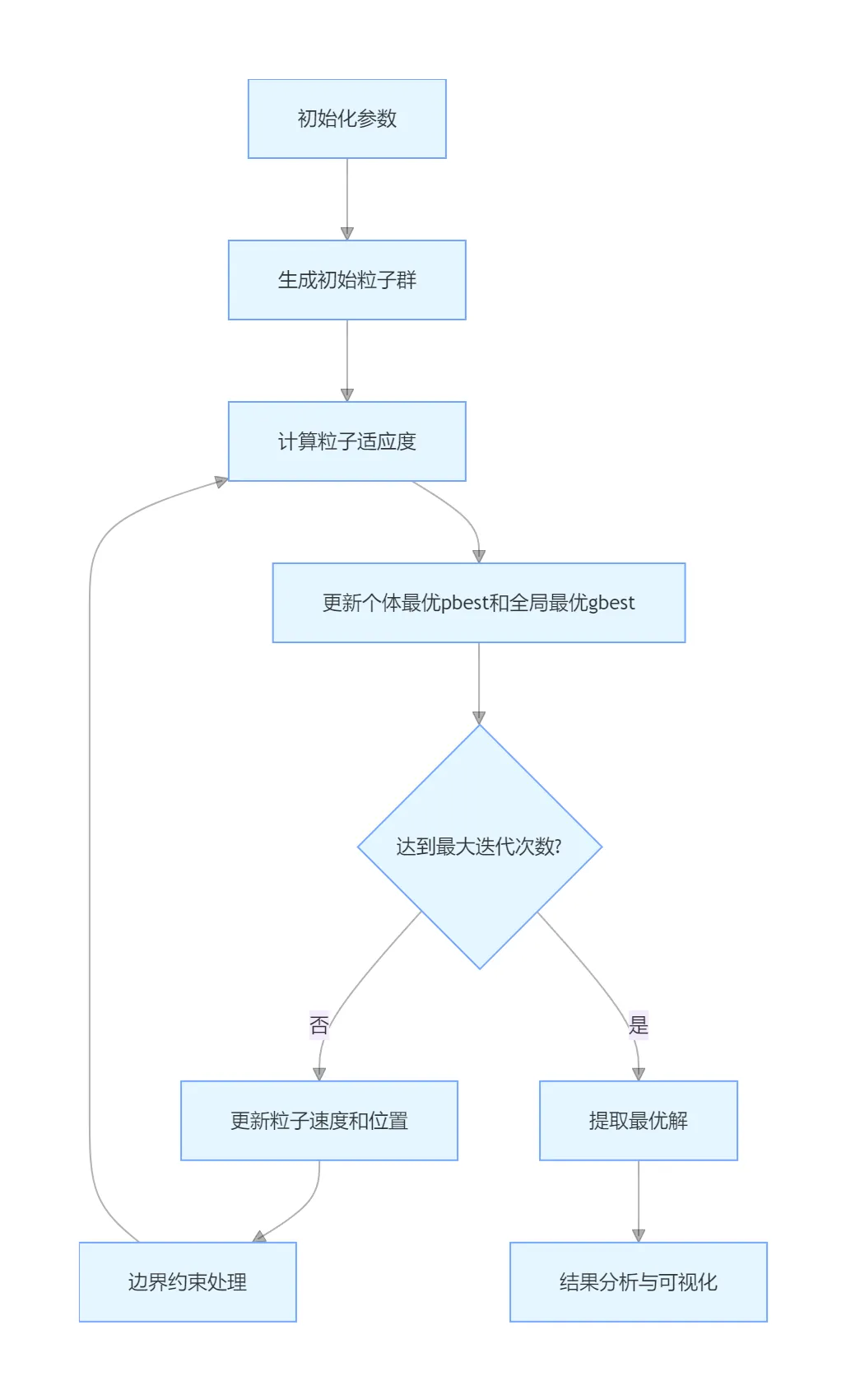 - 动态权重策略:线性递减惯性权重平衡算法前期全局探索和后期局部开发能力