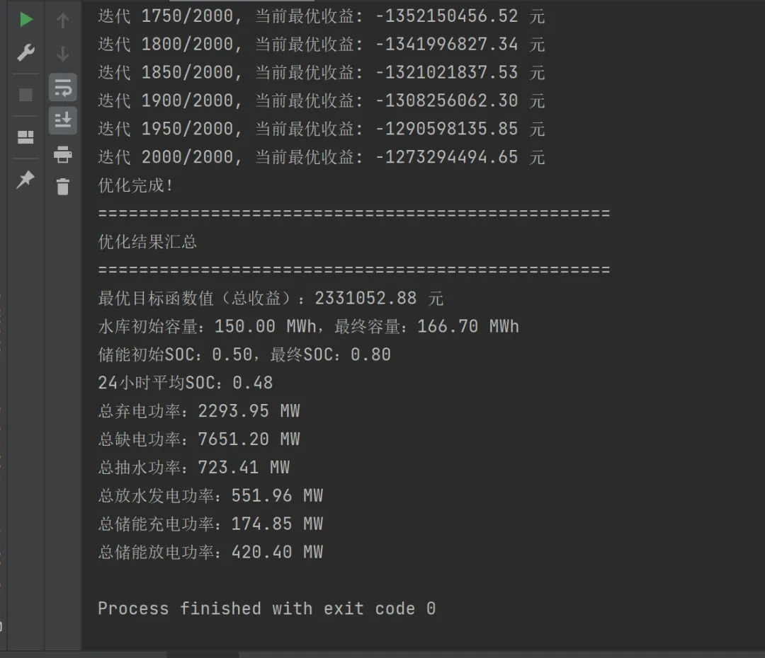 基于粒子群优化的多能源调度模型能够有效求解含抽水蓄能和电化学储能的综合能源系统优化问题,通过合理的约束惩罚机制和算法参数设计,可在满足所有物理约束的前提下实现系统收益最大化。后续可进一步研究:
