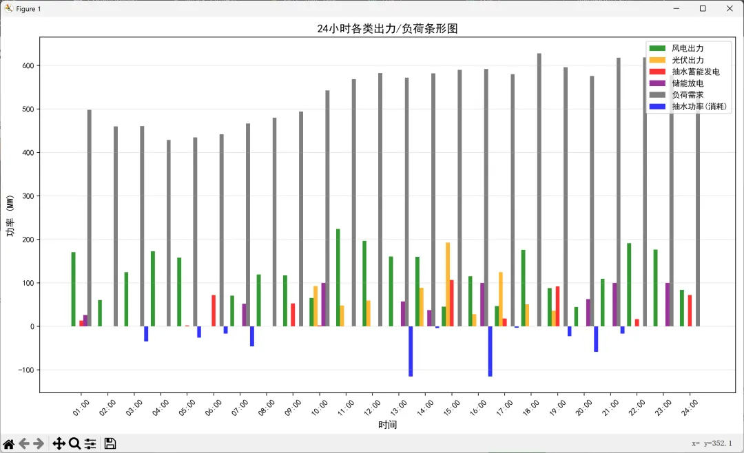 - 储能单元:抽水蓄能(含抽水/放水过程)、电化学储能(含充电/放电过程)