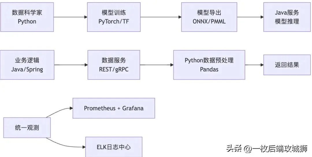 数据中台 | 混合 | Python训练 + Java部署 | 兼顾灵活与性能 |