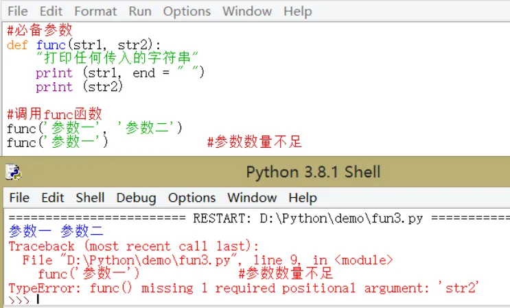 必备参数或称位置实参,须以正确的顺序传入函数。调用的数量必须和声明时一样。