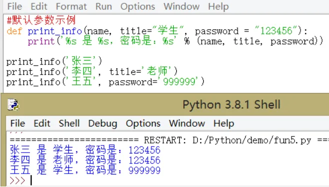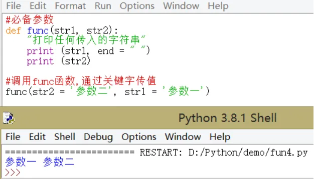 使用关键字参数运行函数调用时参数的顺序与声明时不一致,因为Python解释器能够用参数名匹配参数值。